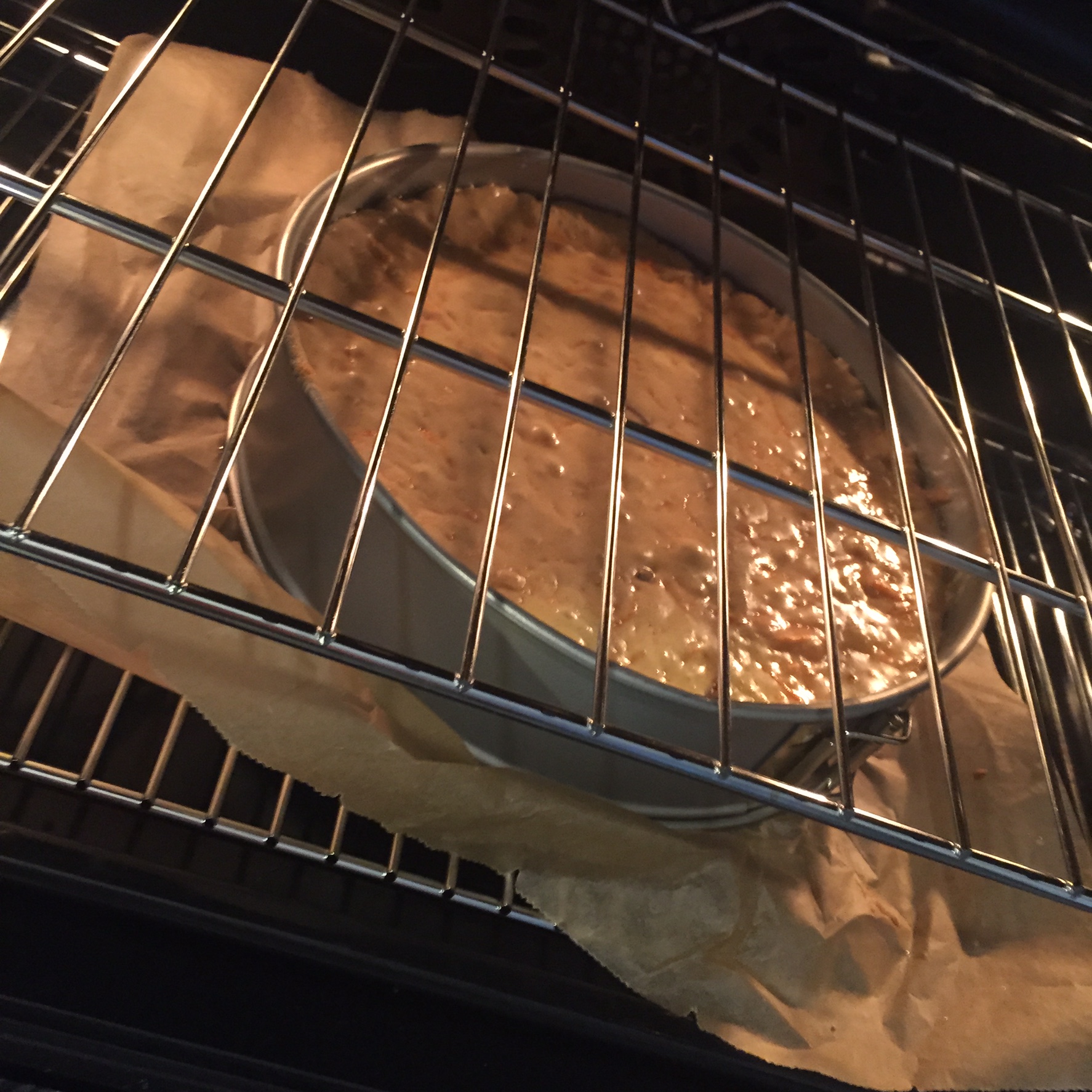 7. Vet een vorm in en bekleed de onderkant met bakpapier, zo komt de taart makkelijker los.